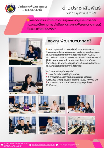 อำเภอดอนจาน ประชุมคณะอนุกรรมการกลั่นกรองและติดตามการดำเนินงานกองทุนพัฒนาบทบาทสตรีอำเภอ ครั้งที่4/2569